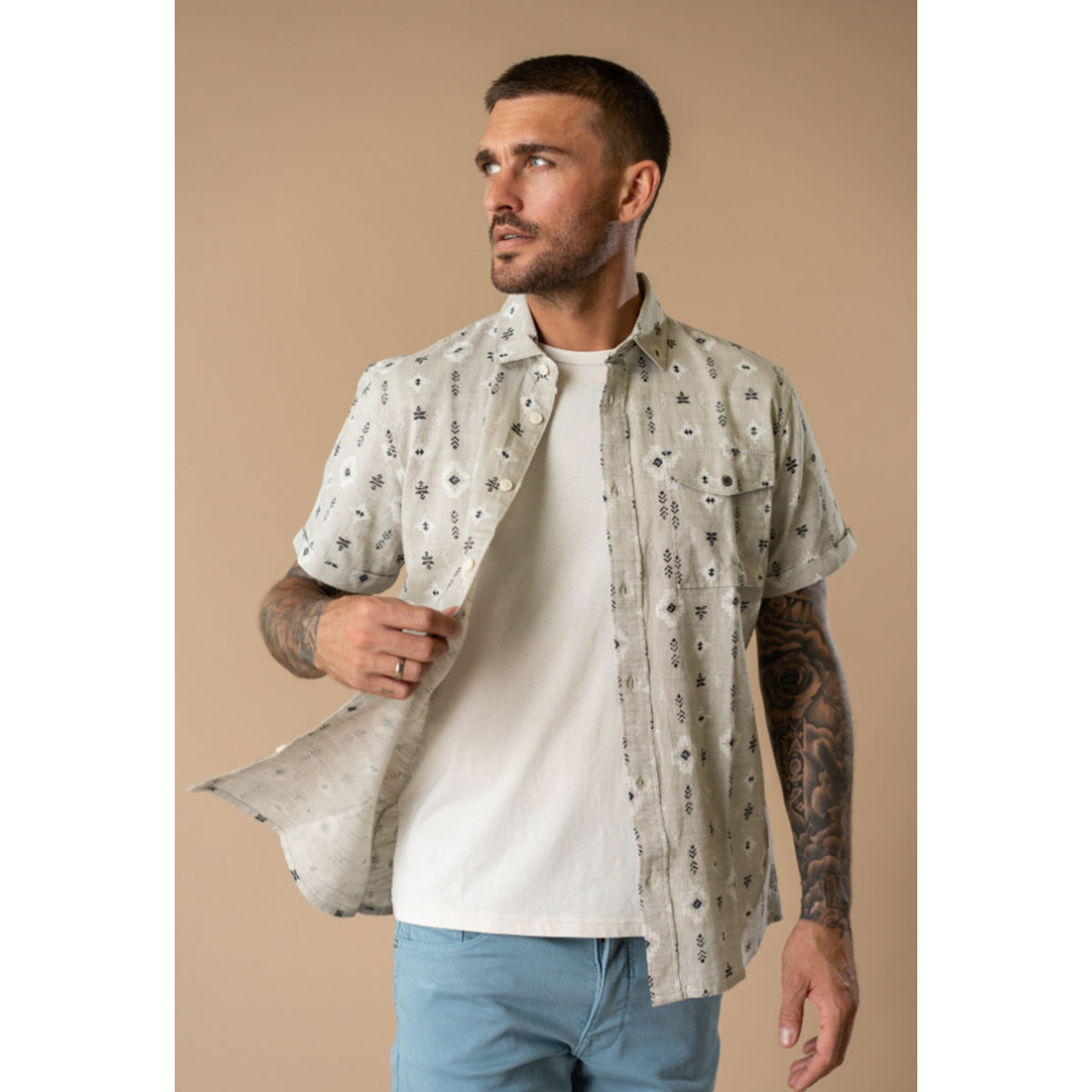 Product eigenschappen van de Petrol Print Blouse Light Tan: